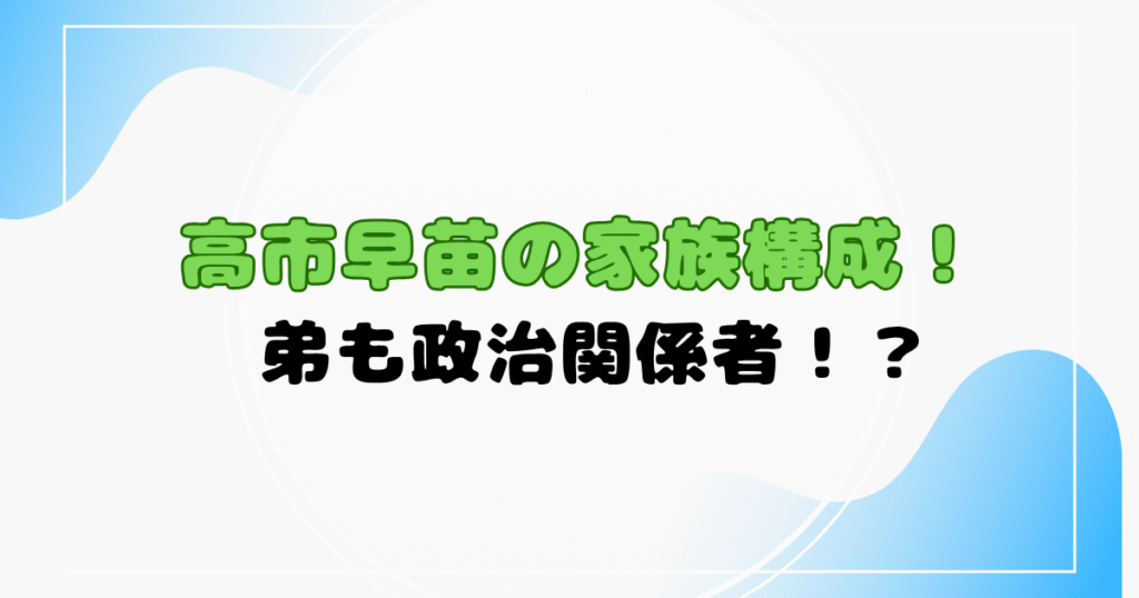 【家族構成】高市早苗は父親の影響で政治家に!弟は旦那の秘書を担当!?