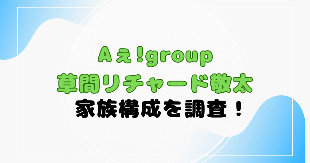 草間リチャード敬太さんは、Aぇ! groupのメンバーとして活動されています! ハーフの草間リチャード敬太さんですが、どのような家族構成なのでしょか? 今回は、草間リチャード敬太さんの家族構成を調査します! 草間リチャード敬太の家族構成 ハーフでワ...